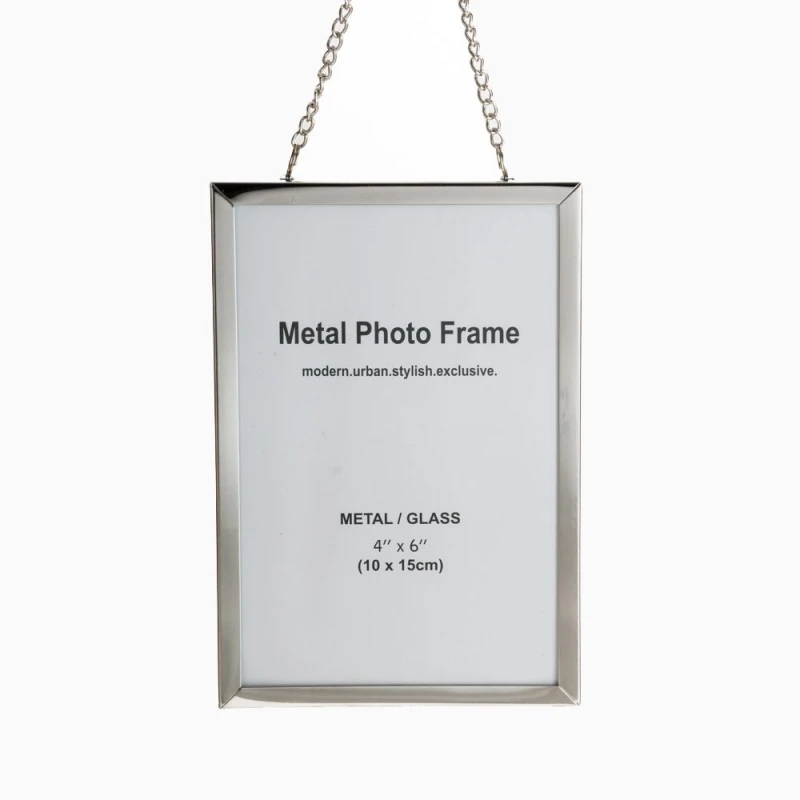 Κορνίζα κρεμαστή μεταλλική με αλυσίδα σε ασημί χρώμα από την από την iliadis - Διαστάσεις φωτογραφίας: 10x25εκ.