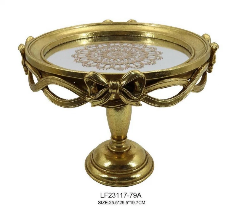 Διακοσμητική πιατέλα με πόδι polyresin σε χρυσό χρώμα από την Oriana Ferelli® - Διαστάσεις: Φ25,5x19,7εκ.