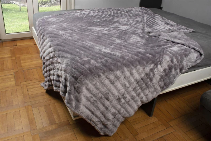 Κουβέρτα μονή ριγέ fleece 100% polyester 300gsm σε γκρι χρώμα από την DimCol - Διαστάσεις: 160x220εκ.