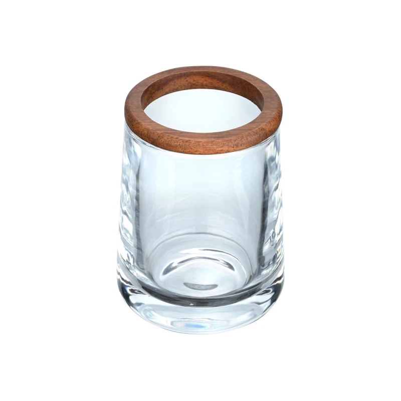 Ποτηροθήκη γυάλινη με λεπτομέρεια ξύλου ακακίας από την estia - Διαστάσεις: 7,5x7,5x10,5εκ.