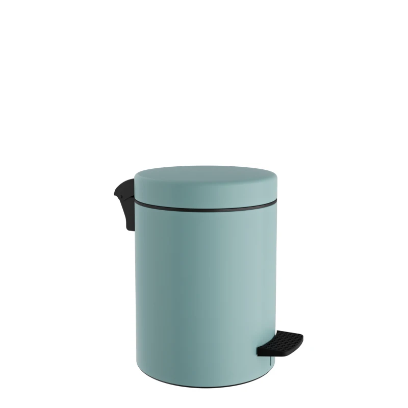 Καλάθι απορριμάτων 3lt με μηχανισμό soft close από γαλβανισμένο χάλυβα ηλεκτροστατικά βαμμένο σε ματ τυρκουάζ χρώμα από την Pam & Co - Διαστάσεις: Φ18x25εκ.