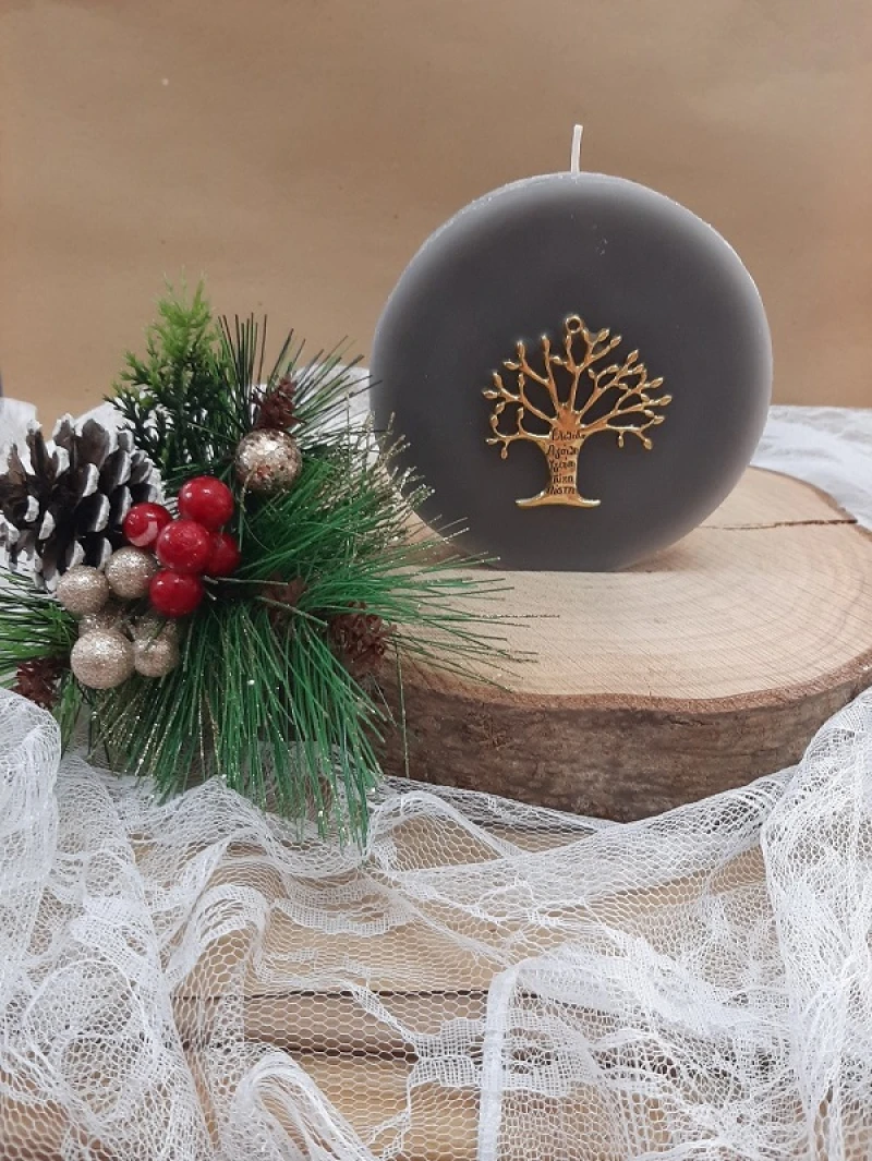 Αρωματικό κερί σε γκρι χρώμα με μεταλλικό σχέδιο δέντρο ζωής σε χρυσό χρώμα - Διαστάσεις: 11x3x11εκ.