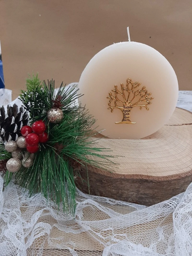 Αρωματικό κερί σε εκρού χρώμα με μεταλλικό σχέδιο δέντρο ζωής σε χρυσό χρώμα - Διαστάσεις: 11x3x11εκ.