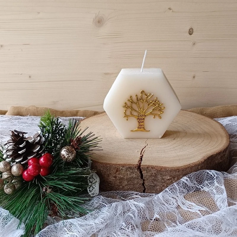Κερί Αρωματικό Πολύγωνο Με Μεταλλικό Δέντρο Ζωής Εκρού-Χρυσό 10x3x9εκ. 24112