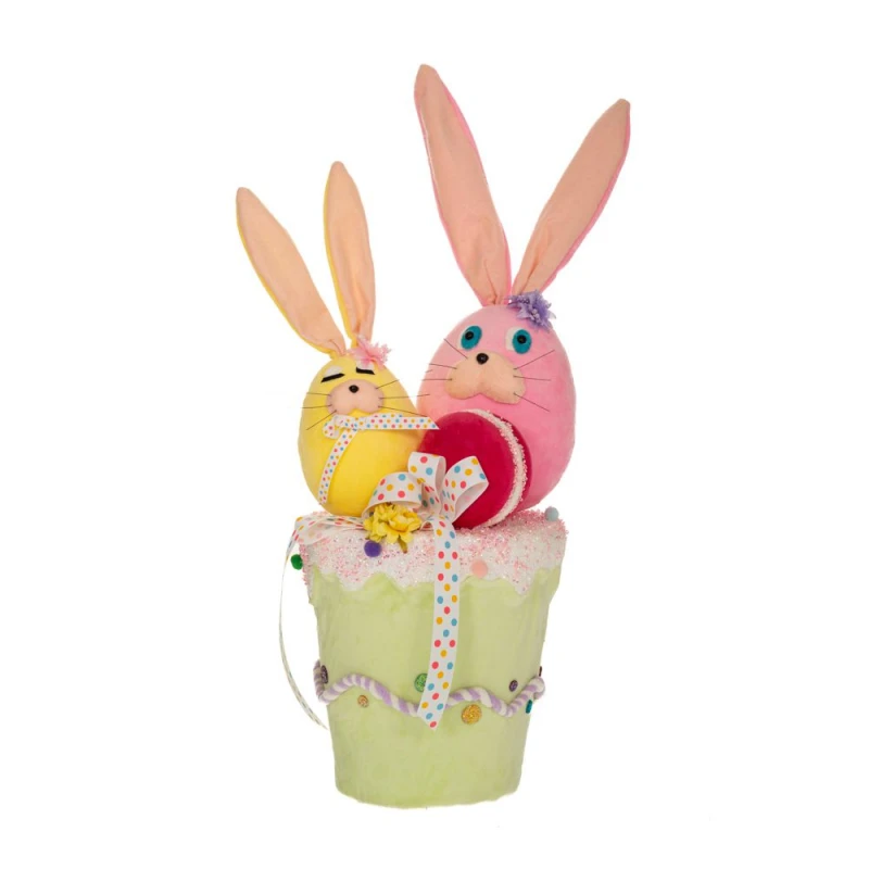 Πασχαλινό διακοσμητικό επιδαπέδιο καλάθι πολύχρωμο με δύο λαγουδάκια υφασμάτινο από την iliadis - Διαστάσεις: 22x24x60εκ.