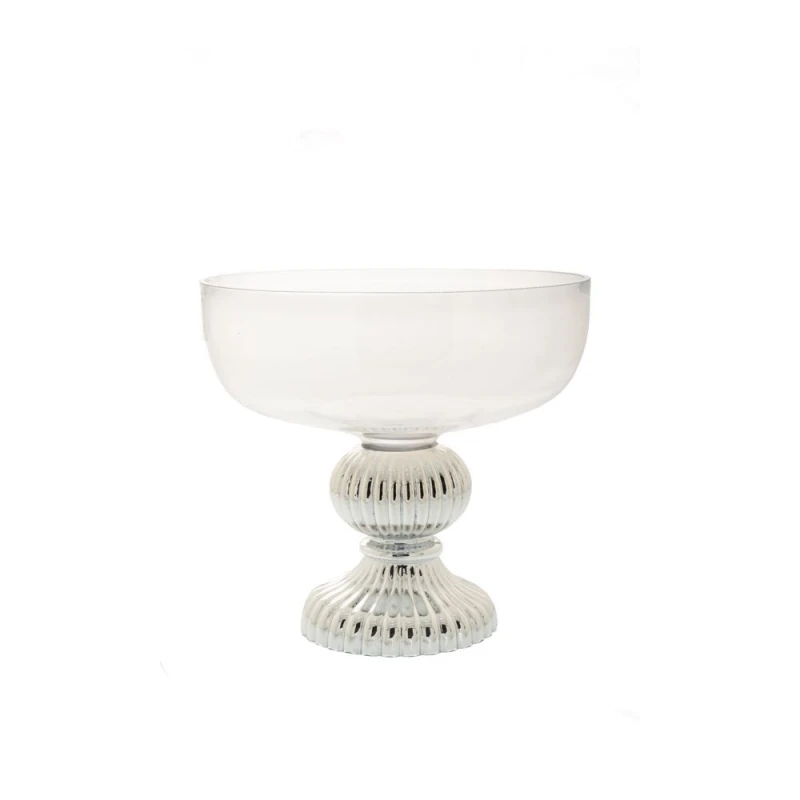 Διακοσμητικό μπωλ με πόδι γυάλινο διάφανο με ασημί βάση από την iliadis - Διαστάσεις: 32x17x29,5εκ.