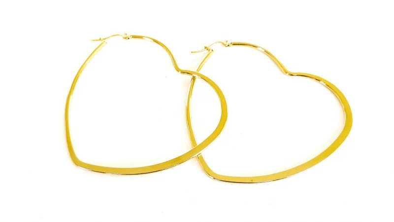 Σκουλαρίκια κρίκοι σε σχήμα καρδιάς από ανοξείδωτο ατσάλι σε χρυσό χρώμα - Διαστάσεις: 6εκ. Προσοχή για λόγους υγιεινής το προιόν δεν επιστρέφεται.