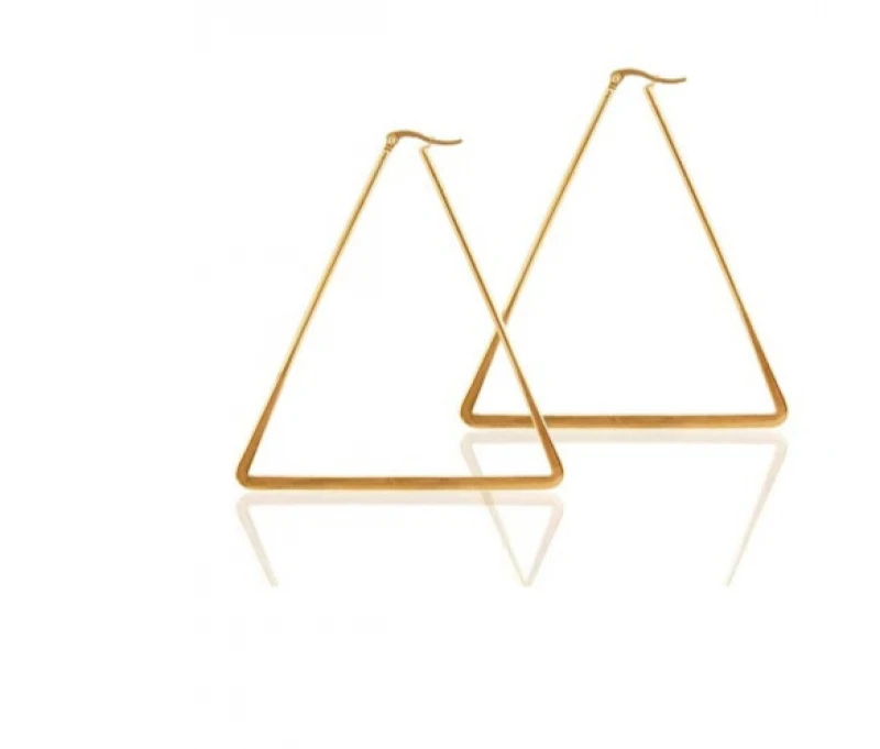 Σκουλαρίκια κρίκοι σε σχήμα τρίγωνου από ανοξείδωτο ατσάλι σε χρυσό χρώμα - Διαστάσεις: 4,5x4,5εκ. Προσοχή για λόγους υγιεινής το προιόν δεν επιστρέφεται.