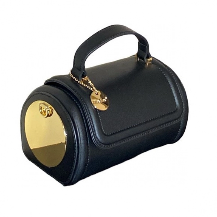 Τσαντάκι Δερματίνης Βαρελάκι Μαύρο-Χρυσό 20,5x12,5x12,5/20εκ. 24-719