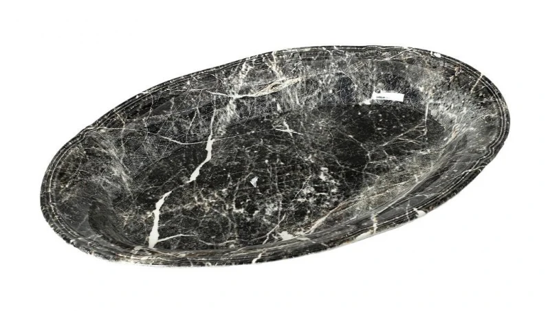Πιατέλα σερβιρίσματος stoneware με όψη μαρμάρου σε μαύρο χρώμα και σε οβάλ σχήμα της σειράς Marble από την ESPIEL - Διαστάσεις: 33x22εκ. - Η ελάχιστη ποσότητα αγοράς για αυτό το προϊόν είναι 2τμχ.
