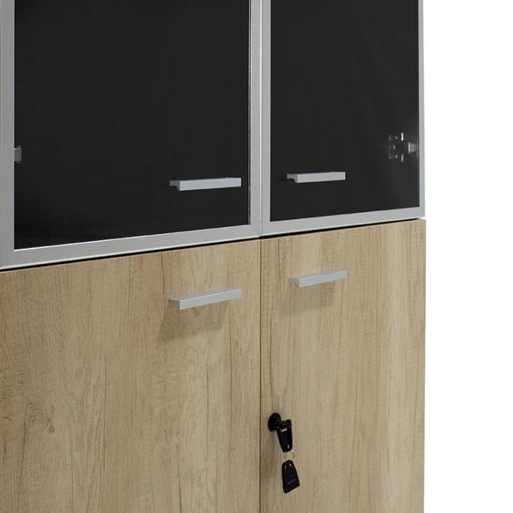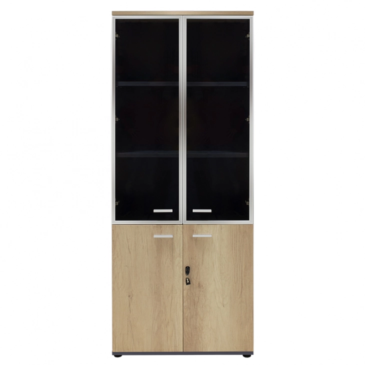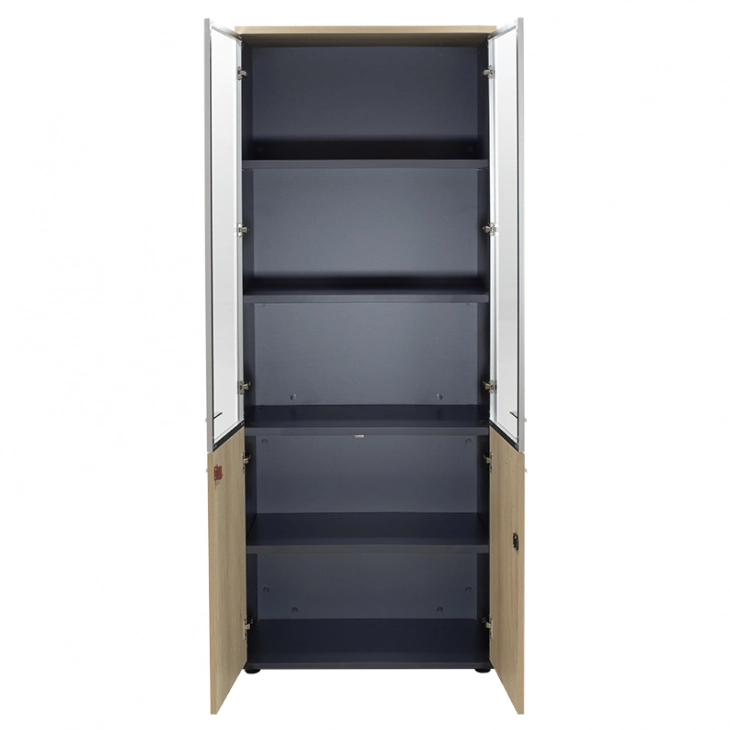 Ντουλάπα γραφείου με γυάλινες πόρτες Lotus χρώμα φυσικό - ανθρακί 80x40x200εκ