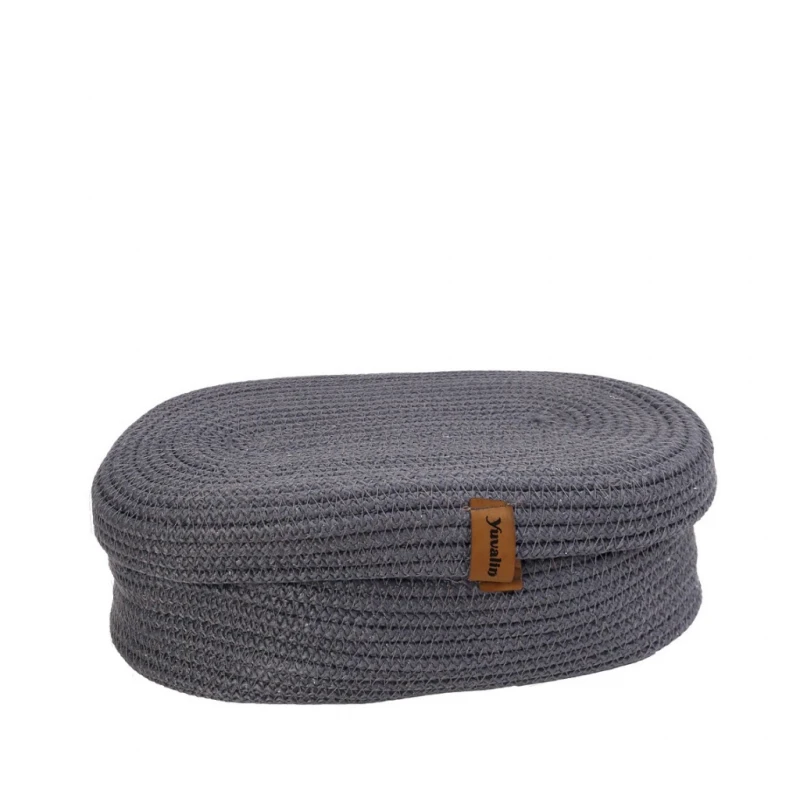 Καλάθι από σχοινί βαμβακερό με καπάκι σε γκρι χρώμα από την ESPIEL - Διαστάσεις: 30x23x12εκ.