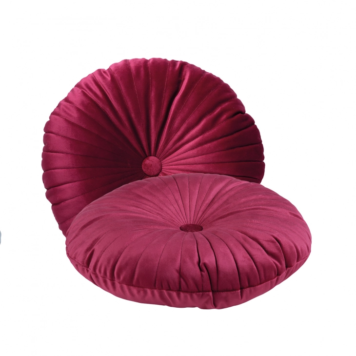 Διακοσμητικό στρογγυλό μαξιλάρι με κουμπί. Tο ύφασμα είναι από 100% polyester, έχει βελούδινη υφή, είναι υποαλλεργικό και πολύ ανθεκτικό στη χρήση. Διατίθεται σε διάσταση φ.38εκ. Das home...makes your house a home!