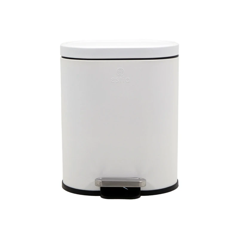 Καλάθι απορριμάτων μεταλλικό με μηχανισμό soft close, πλαστικό εσωτερικό δοχείο, σταθερό πεντάλ και ειδική λαβή για εύκολη μετακίνηση σε λευκό χρώμα της σειράς Ovoid από την Estia - Διαστάσεις: 24,4x21,5x29,4εκ., Χωρητικότητα: 6lt.