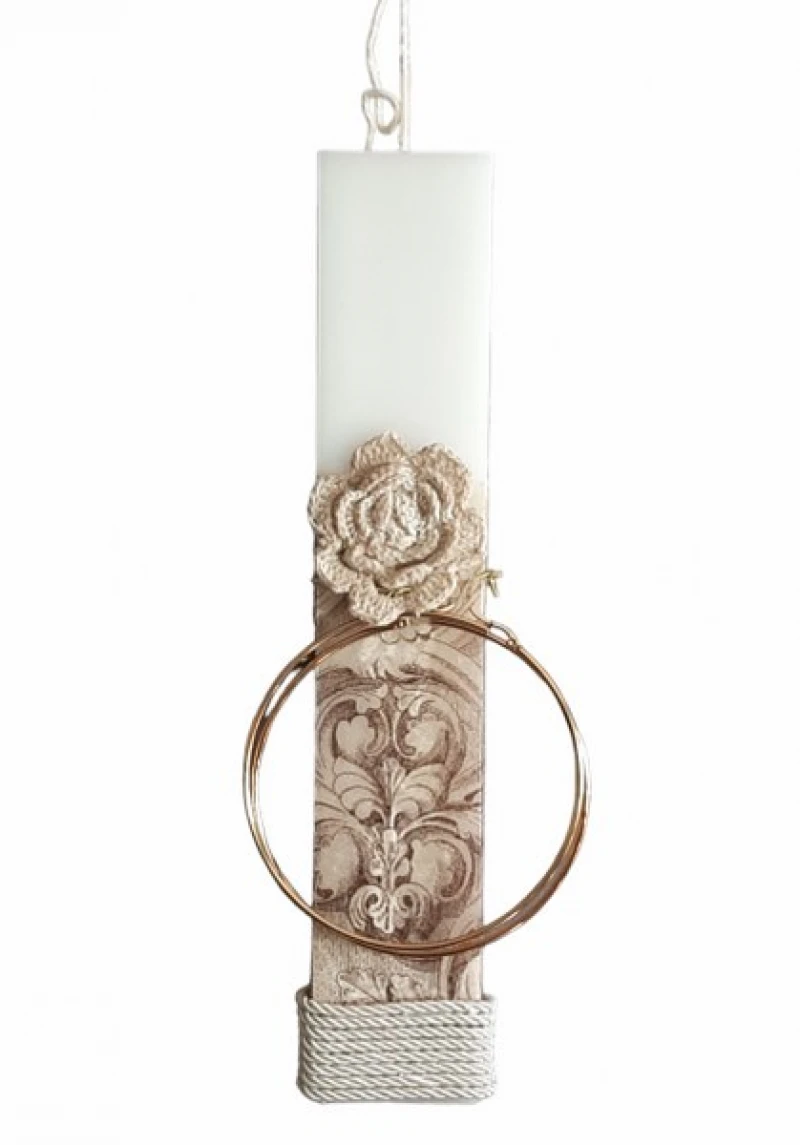 Λαμπάδα Χειροποίητη Πλακέ Λευκή Με Decoupage & Σκουλαρίκια Κρίκους Χρυσό 2,7x1,2x25εκ. 24-766