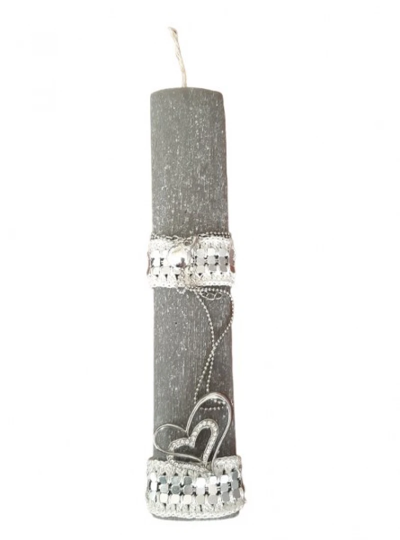 Λαμπάδα Χειροποίητη Οβάλ Γκρι Με Κολιέ Ασημί Καρδιές 3,8x1,8x20εκ. 24-770