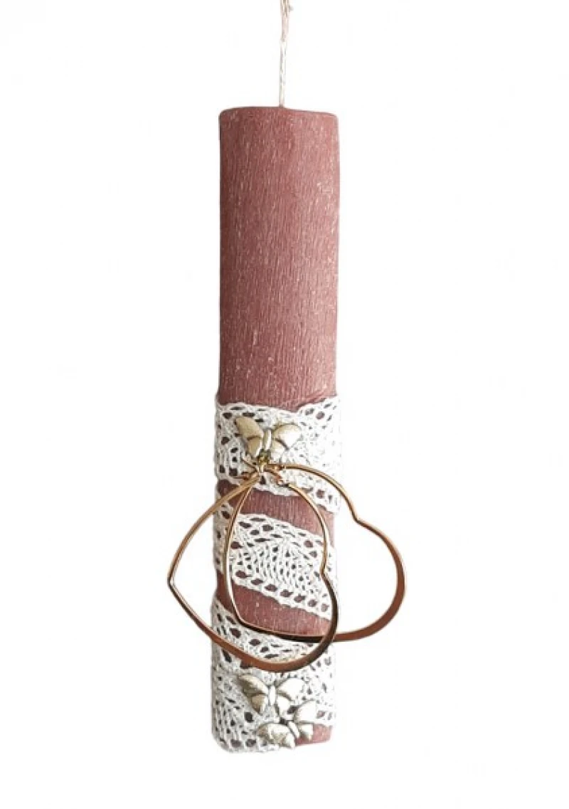 Λαμπάδα Χειροποίητη Οβάλ Σάπιο Μήλο Με Σκουλαρίκια Κρίκους Καρδιά Χρυσό 3,8x1,8x20εκ. 24-772