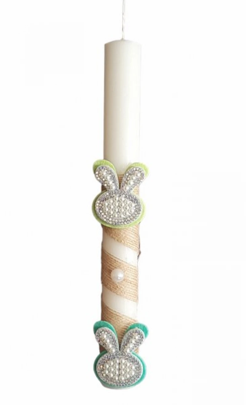 Αρωματική λαμπάδα χειροποίητη με σχέδιο λαγουδάκια με στρας και πέρλες - Διαστάσεις: 2,5x25εκ.