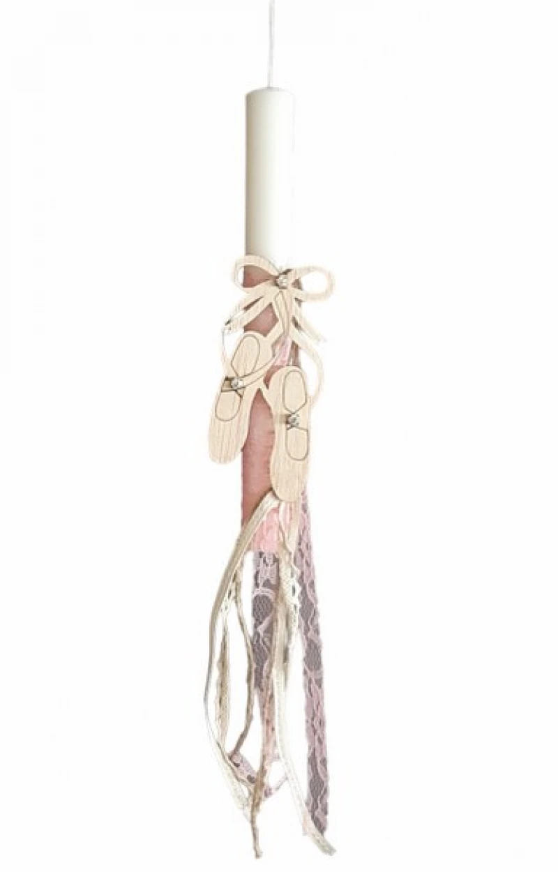 Λαμπάδα Αρωματική Χειροποίητη Pointe Με Δαντέλα & Κορδέλες 2,5x25εκ. 24-784