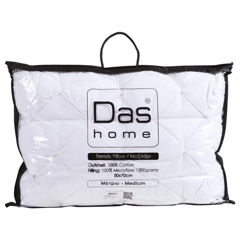 Μαξιλάρι μέτριας σκληρότητας 1300 γραμμαρίων. Το εξωτερικό του κάλυμμα είναι 100% βαμβακι, ενώ το εσωτερικό του αποτελείται από ίνες microfiber. Διατίθεται σε διάσταση 50x70cm. Das home...makes your house a home!