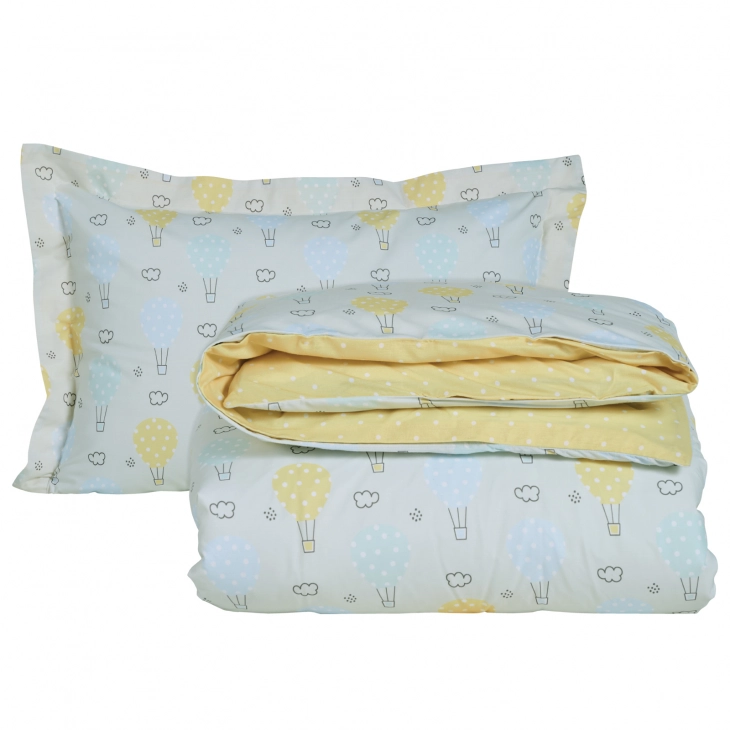 Σετ παπλωματοθήκη της σειράς Kid δύο όψεων. Είναι από 70% υποαλλεργικό βαμβάκι και 30% πολυεστέρα με πυκνότητα ύφανσης 150 TC, ιδιαίτερα απαλή στην αφή & ανθεκτική στη χρήση. Το σετ περιλαμβάνει μία παπλωματοθήκη διάστασης 160x240εκ και μία μαξιλαροθήκη 50x70+5εκ. Das home...makes your house a home!