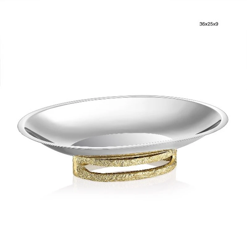 Πιατέλα σερβιρίσματος ανοξείδωτη αλουμινίου σε σε ασημί χρώμα με χρυσές λεπτομέρειες από την Capolavoro - Διαστάσεις: 36x25x9εκ.