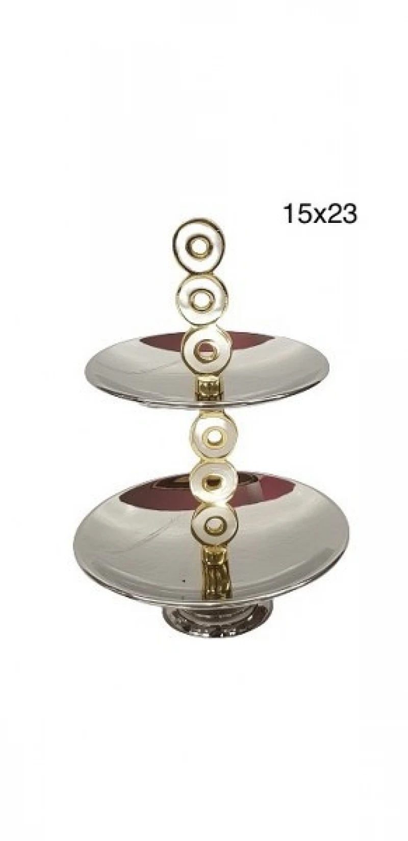 Ορντερβιέρα 2όροφη ανοξείδωτη σε ασημί χρώμα με χρυσές και λευκές λεπτομέρειες από την Capolavoro - Διαστάσεις: Φ15x23εκ.