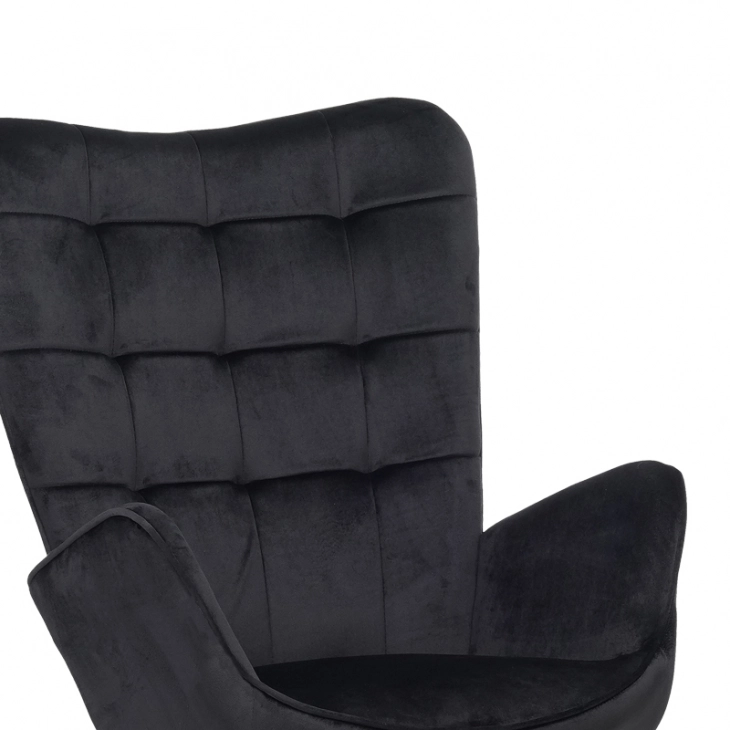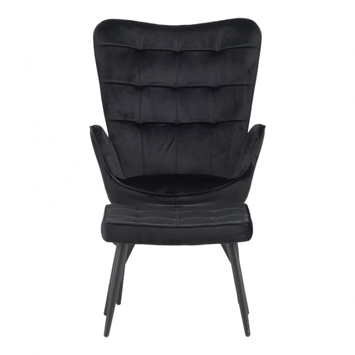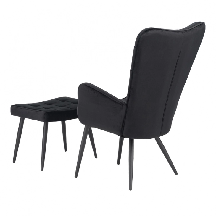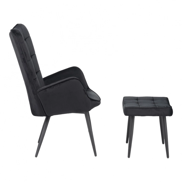 Πολυθρόνα με υποπόδιο Dorita pakoworld βελούδο μαύρο-μαύρο πόδι 68.5x76x103εκ