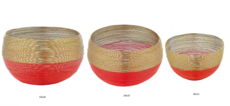 Διακοσμητικό μπωλ σετ 3τμχ μεταλλικό σε χρυσό-πορτοκαλί χρώμα από την Capolavoro - Διαστάσεις: 33x20εκ.-26x15εκ.-18x11εκ.