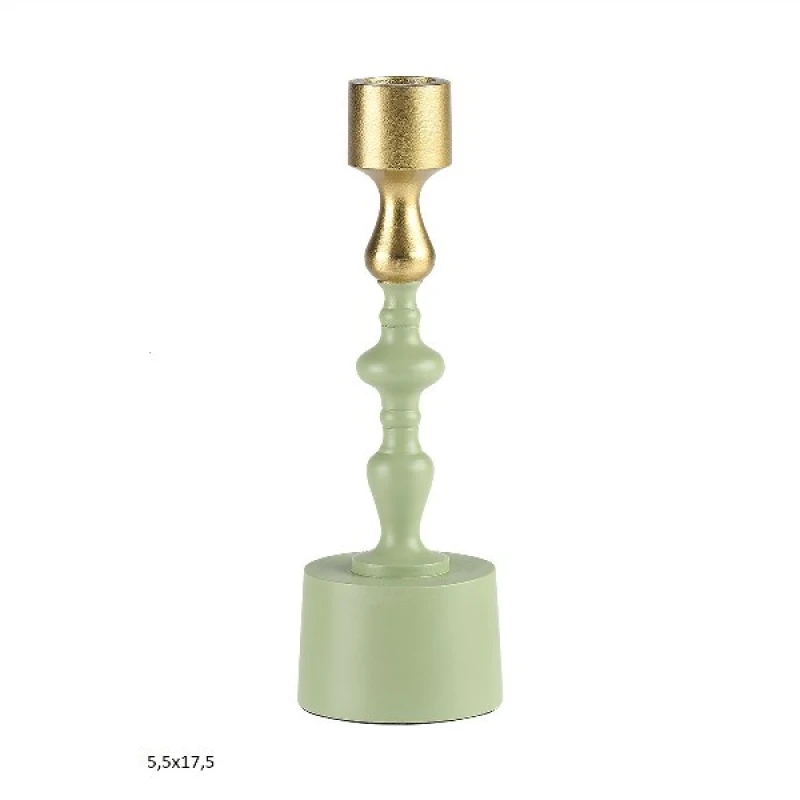 Κηροπήγιο Αλουμινίου Χρυσό-Φυστικί 5,5x17,5εκ. Capolavoro 22.000.1513