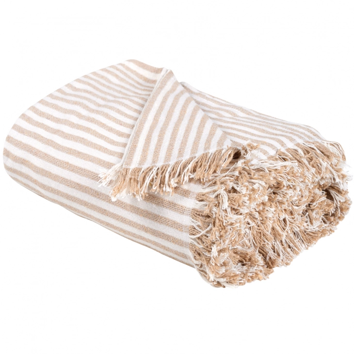 Ριχτάρι Polycotton Ζακάρ Διθέσιος 180x250εκ. Throws Line 0256 Εκρού-Μπεζ Das Home