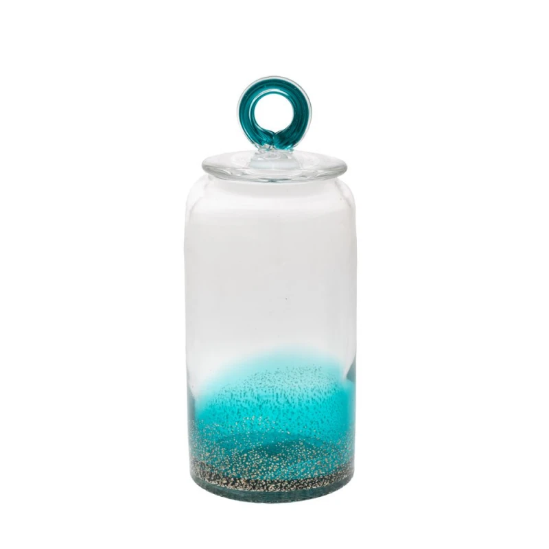 Διακοσμητικό βάζο γυάλινο σε διάφανο-τυρκουάζ χρώμα με καπάκι από την iliadis - Διαστάσεις: Φ12x28,5εκ.