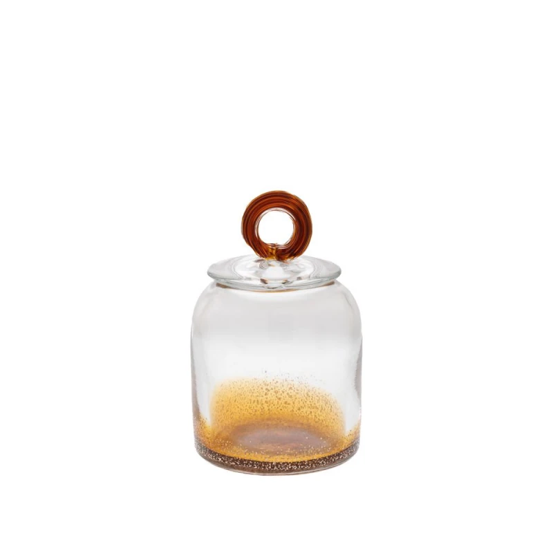 Διακοσμητικό βάζο γυάλινο σε διάφανο-καφέ χρώμα με καπάκι από την iliadis - Διαστάσεις: Φ12x18,5εκ.