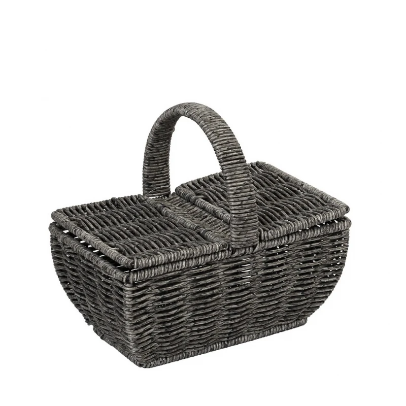 Καλάθι ψάθινο με καπάκι σε γκρι χρώμα και σε ορθογώνιο σχήμα από την ESPIEL - Διαστάσεις: 21x14x19εκ.