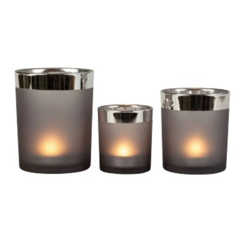 Κηροπήγιο Σετ 3τμχ Γυάλινο Γκρι-Ασημί Royal Art 10x13εκ.-9x10εκ.-7x8εκ. IKO6049