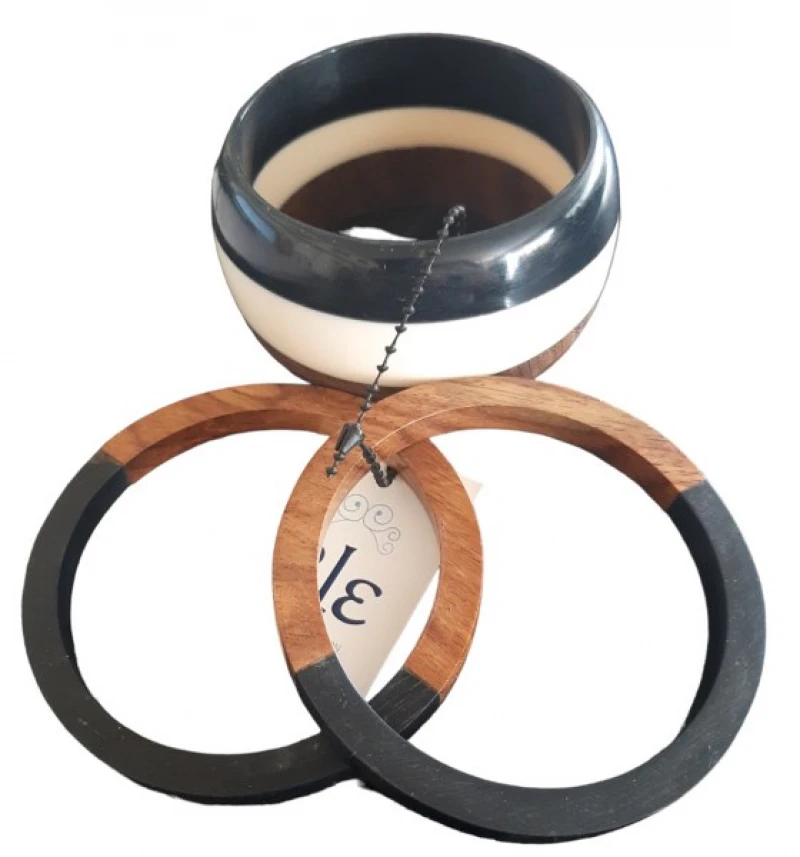 Βραχιόλι 3τμχ Κοκκάλινο Ιβουάρ-Καφέ-Μαύρο ble Φ7εκ. 5-45-747-0008