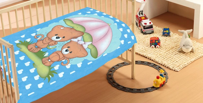 Κουβέρτα Κούνιας Βελουτέ 110x140εκ. Rainy Bears 05 Sky Blue DimCol