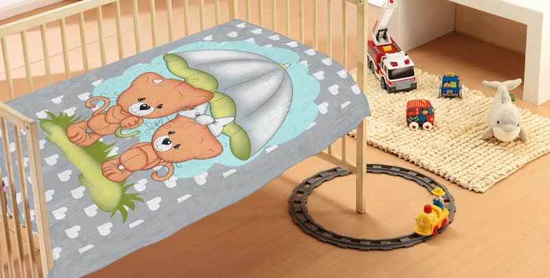Κουβέρτα Κούνιας Βελουτέ 110x140εκ. Rainy Bears 07 Grey DimCol