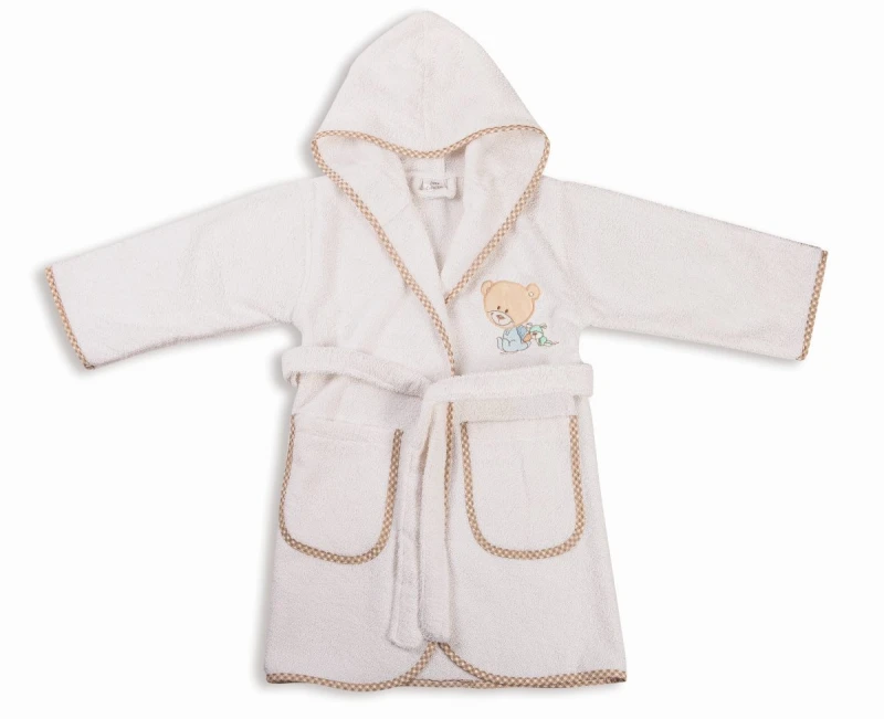 Μπουρνούζι Παιδικό Με Κουκούλα Πετσετέ Happy Bears 21 Λευκό-Μπεζ Size 02 DimCol