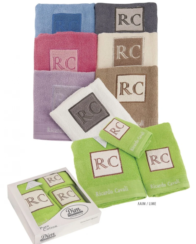 Σετ Πετσέτες 3 τμχ Βαμβακερές Ricardo Cavalli Lime DimCol