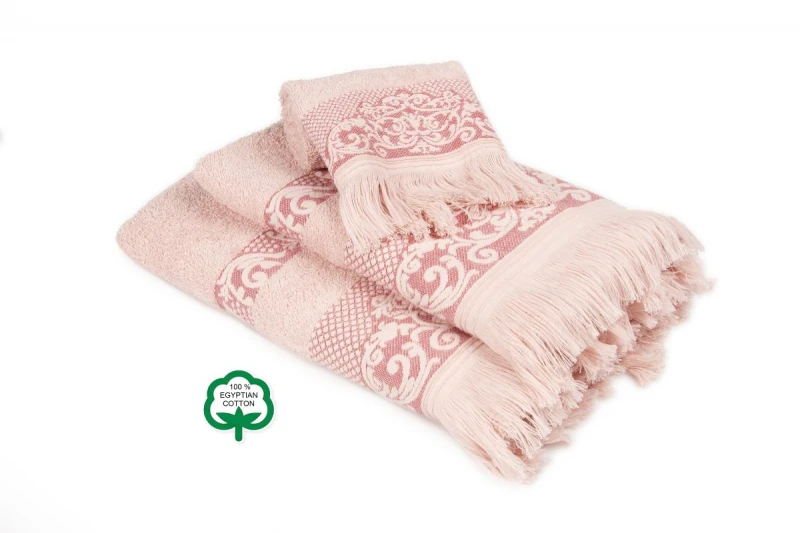 Πετσέτες μπάνιου ζακάρ με κρόσσι σετ 3 τεμαχίων από απαλό Αιγυπτιακό βαμβάκι 100% βάρους 500 gsm,πλήρως απορροφητικές. Το σετ περιλαμβάνει: πετσέτα 30x50εκ. χεριών, πετσέτα 50x90εκ. προσώπου και πετσέτα 70x140εκ. σώματος, υφασμένη απο επιλεγμένα νήματα κορυφαίας ποιότητας.