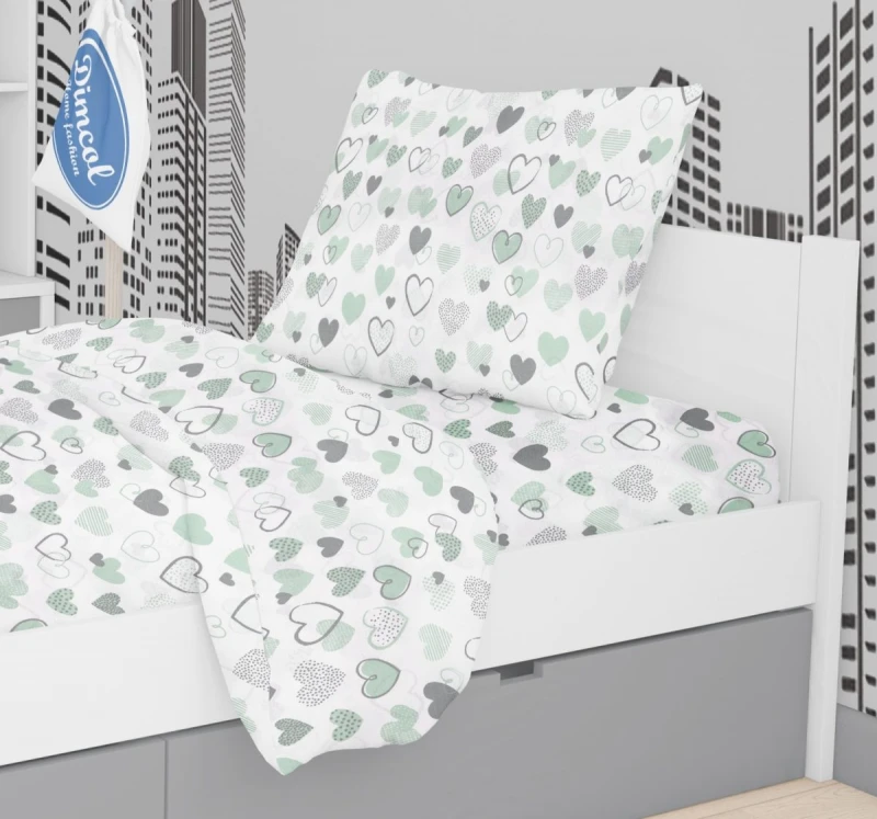Μαξιλαροθήκη Παιδική Φάκελος Βαμβακερή 50x70εκ. Hearts 10 Green DimCol