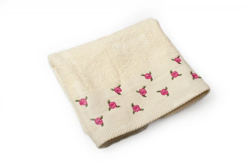 Πετσέτα Βαμβακερή Μεμονωμένη Προσώπου 50x90εκ. Εκρού Με Κέντημα Ανθάκι DimCol