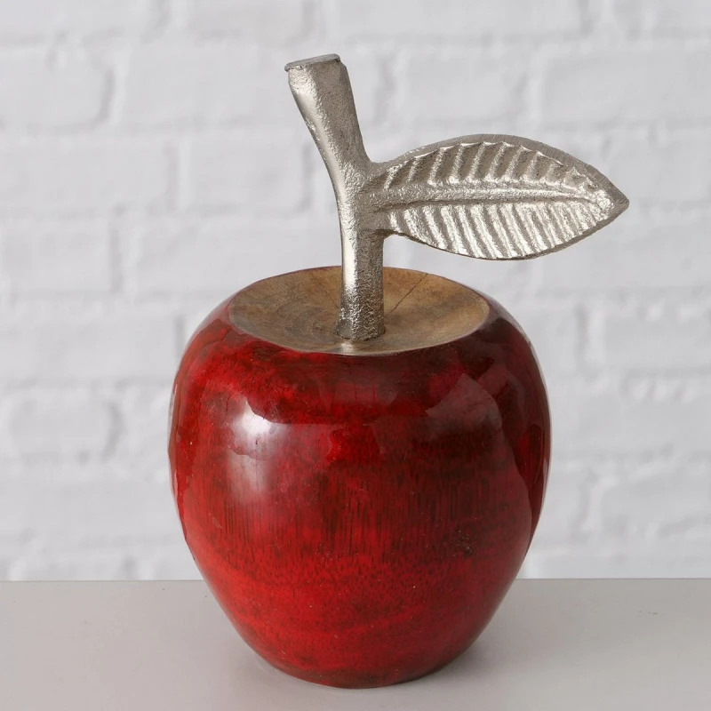 Διακοσμητικό Επιτραπέζιο Μήλο Ξύλινο-Μεταλλικό Κόκκινο-Ασημί 14εκ. Rapple MSA 20-99-797