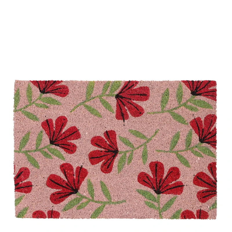 Πατάκι εισόδου από κοκοφοίνικα σε ροζ χρώμα με σχέδιο κόκκινα λουλούδια από την MSA - Διαστάσεις: 60x40εκ.