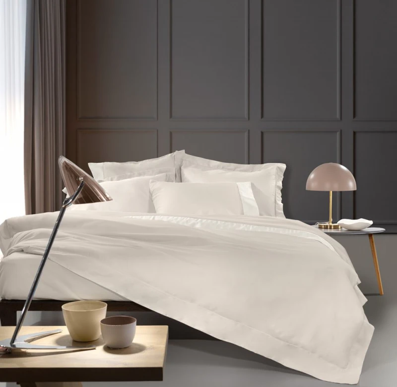 Σεντόνι με φάσα διαφορετικού χρώματος και αζούρ από την εταιρεία Guy Laroche Paris. Το ύφασμα είναι 100% βαμβακοσατέν 250 κλωστών που ξεχωρίζει για την απαλότητα, την ανθεκτικότητα και την ευκολία στο σιδέρωμα. Διάσταση 270x280εκ.
