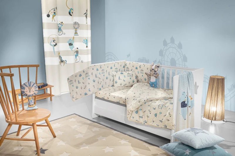 Οδηγίες Φροντίδας-Πλυσίματος: Το βρεφικό σετ μπορεί να πλυθεί σε πρόγραμμα έως 60°C. Χρησιμοποιήστε μέτριο και όχι δυνατό απορρυπαντικό – κατά προτίμηση υγρό - για τα βαμβακερά υφάσματα. Μη χρησιμοποιείτε λευκαντικό. Αφαιρέστε το προϊόν μόλις τελειώσει το πλυντήριο. Με αυτόν τον τρόπο θα αποφύγετε τα τσαλακώματα αλλά και προβλήματα με στίγματα / ξεβάμματα από την επαφή με άλλα ρούχα. Στέγνωμα: Προτιμήστε το φυσικό στέγνωμα. Υπάρχει η δυνατότητα στεγνώματος σε στεγνωτήριο, στο αντίστοιχο πρόγραμμα. (Στεγνώστε τα φυσικά όχι σε δυνατό ήλιο ή σε στεγνωτήριο σε μέτρια θερμοκρασία) Σίδερο: Σιδερώστε σε μεσαία έως υψηλή θερμοκρασία. Αποθήκευση: Για τη φύλαξη, προτιμήστε υφασμάτινες θήκες που επιτρέπουν στα προϊόντα σας να «αναπνέουν» και φυλάξτε τα σε ξηρό μέρος.