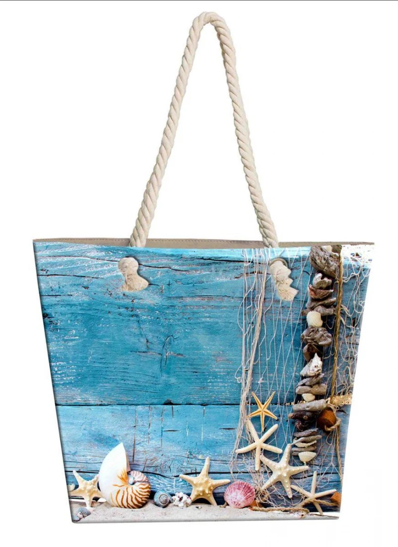 Τσάντα θαλάσσης με αντοχή στο νερό με ψηφιακά εκτυπωμένο σχέδιο και όμορφα μοντέρνα χρώματα που ελκύουν τα βλέμματα διαστάσεων 40x45 cm. Σχεδιασμένη για να χωράει όλα τα απαραίτητα. Κατασκευασμένη από 100% Polyester.
