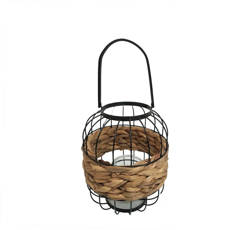 Φανάρι μεταλλικό-ψάθινο σε μαύρο-μπεζ χρώμα από την ESPIEL - Διαστάσεις: Δ24x29εκ.