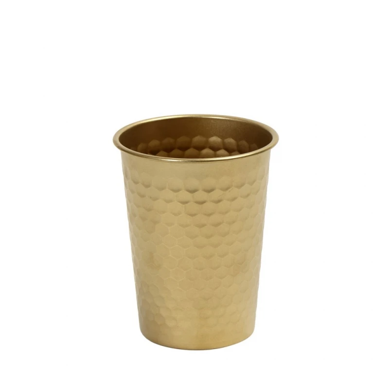 Ποτήρι ανοξείδωτο σφυρήλατο 18/10 σε χρυσό χρώμα της σειράς Snow από την ESPIEL - Διαστάσεις: 8,3x10εκ., Χωρητικότητας: 350ml. - Η ελάχιστη ποσότητα αγοράς για αυτό το προϊόν είναι 4τμχ.